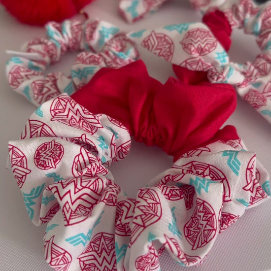Each scrunchie wraps approximately twice around the hair. Elastic length (7.5”-8.5”).